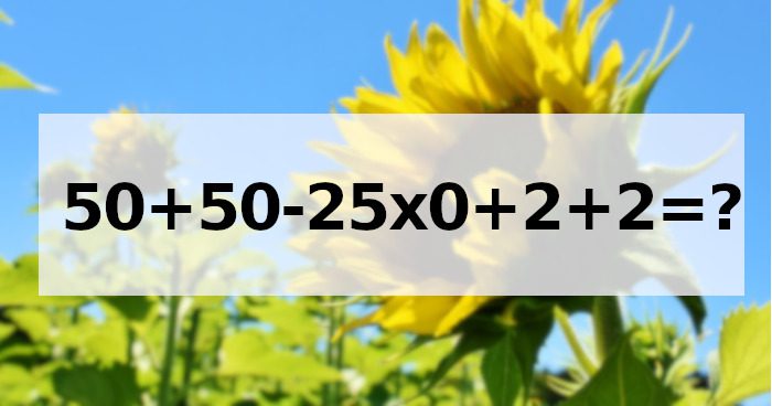 Met deze regel in gedachten beginnen we eerst met de vermenigvuldiging en berekenen we 25×0, wat nul oplevert. We vervangen dit in onze oorspronkelijke vergelijking, wat resulteert in 50+50-0+2+2. Los dit op en je krijgt 104 als antwoord.